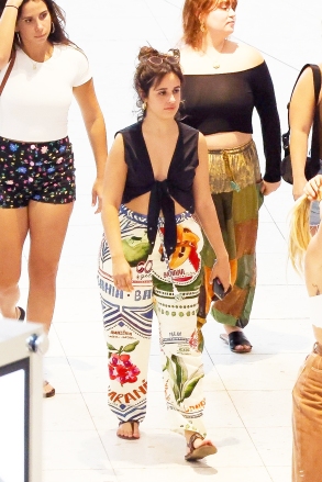 Camila Cabello looked stylish in a crop top &pants while at the mall in Miami with friends. (MEGA/BACKGRID)