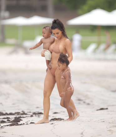 Kim has been rocking a slew of sexy swimsuits lately and aside from this look, she recently posted a slideshow of photos of herself posing on steps leading to the beach while wearing a tiny white string bikini. Kim posted the photos to her Instagram pointing out that her sister, Kendall Jenner, took the photos of Kim.
