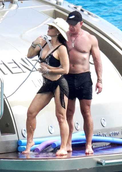 Lauren Sanchez and Jeff Bezos hose off during a 2021 trip to St-Barts (Photo: Mega)