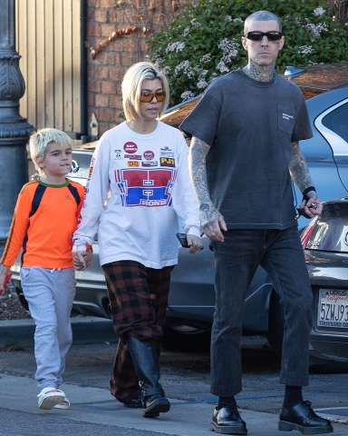 Calabasas, CA – *EXCLUSIVE* – Reality star Kourtney Kardashian sports a laidback look while out for an early dinner with her son Reign and husband Travis Barker at his restaurant Crossroads Kitchen. The vegan restaurant located in Calabasas has been a hit among the city’s foodies, and its plant-based cuisine is well-known in the vegan community. The couple was seen holding hands as they arrived at the restaurant, and their casual outfits perfectly complemented each other. Pictured: Kourtney Kardashian, Travis Barker BACKGRID USA 2 APRIL 2023 BYLINE MUST READ: LAGOSSIPTV / BACKGRID USA: +1 310 798 9111 / [email protected] UK: +44 208 344 2007 / [email protected] *UK Clients – Pictures Containing Children Please Pixelate Face Prior To Publication*